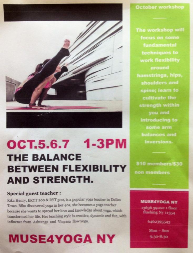 “The Balance b/w Flexibility and Strength” workshop w/ Guest teacher Rika Henry. Oct 5th-7th, 2014