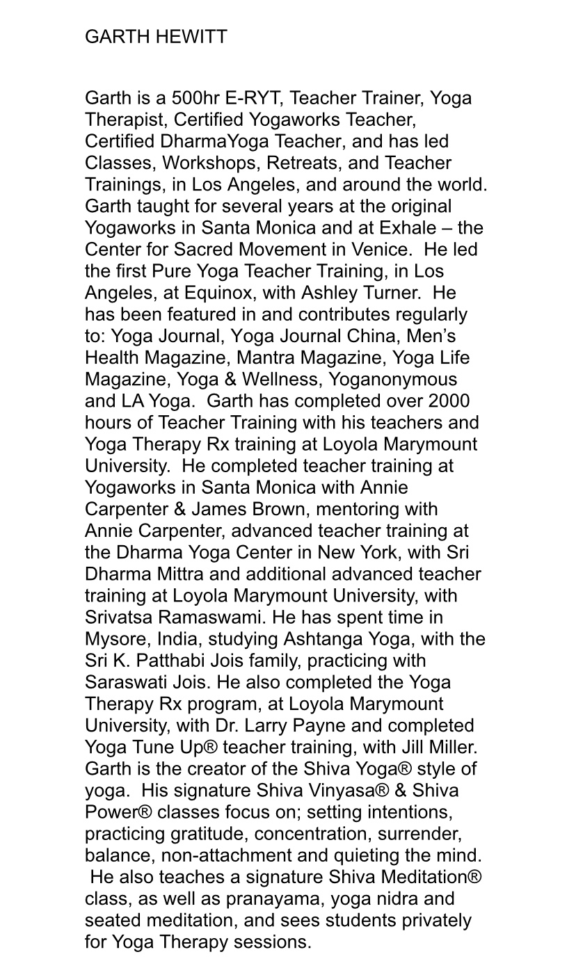 非常開心能邀請到全美及亞洲知名瑜珈大師Garth Hewitt來教室辦研習課,3/4 5:30-7:30 pm 後彎研習課程backbend 3/5 7-9 pm 核心研習課程core strength 3/6 10-12 pm 後彎研習課程backbend!請跟我報名❤️他是知名瑜珈教室的師資培訓老師,現在全世界教學,熱愛瑜珈的你,千萬不要錯過這個機會與大師一起練習🥳$40 per class